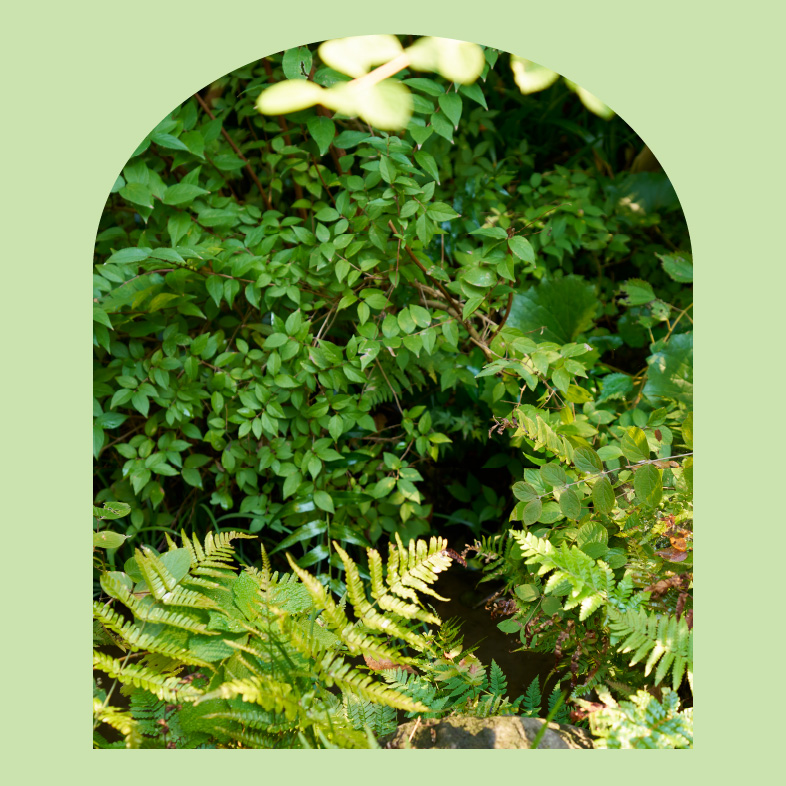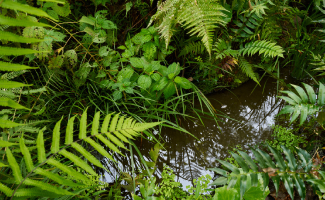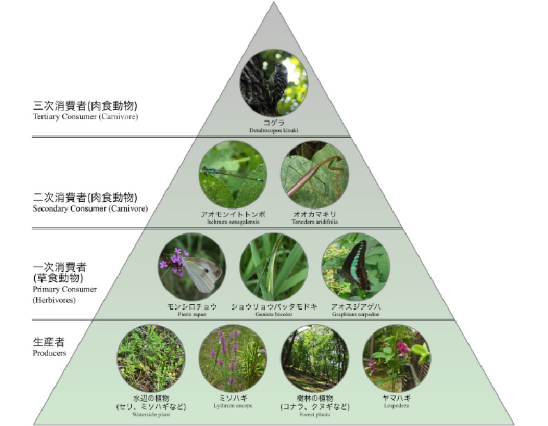 森を構成する樹種は、在来の植物種を中心に高木や低木、林床の植物を植栽し、多層構造の緑地とすることで自然に近い生態系を目指しています。また、このビオトープは清水谷公園や弁慶濠の水辺と繋がり、トンボやチョウの生息地となり、都心の貴重な水辺の生態回廊を形成します。