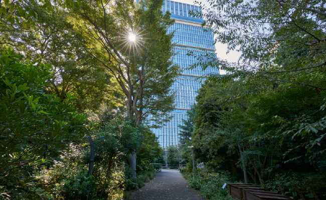 東京ガーデンテラス紀尾井町では、建物周辺に生まれた新たな緑地と皇居などの都心の貴重な緑地をつなぎ、エコロジカル・ネットワーク(生態回廊)の形成に貢献するまちづくりを進めています。