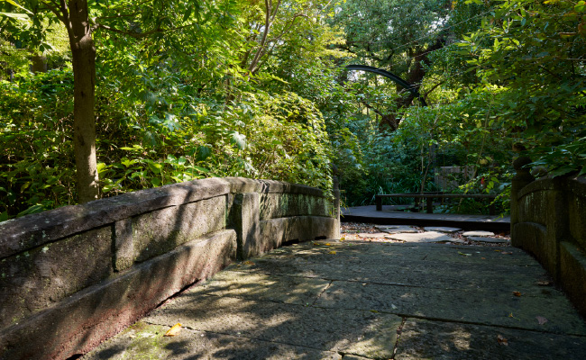 「光の森」では、弁慶濠の石垣に代表される周辺地域の歴史的な環境資源との調和をもとに生物多様性の保全と再生をすすめています。