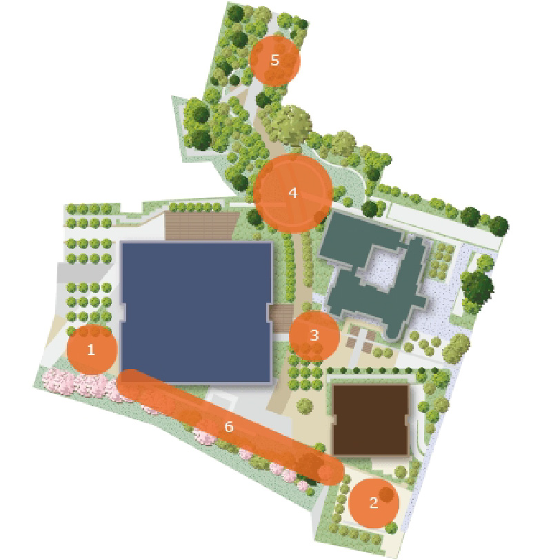 敷地内の散策ついでに、隠しロゴを探してみませんか。