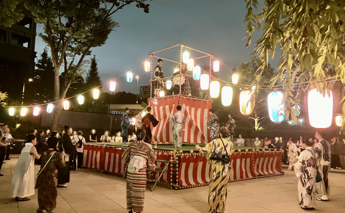 紀尾井町に盆おどりがやってきました。miniビアガーデンやmini縁日も同時開催。