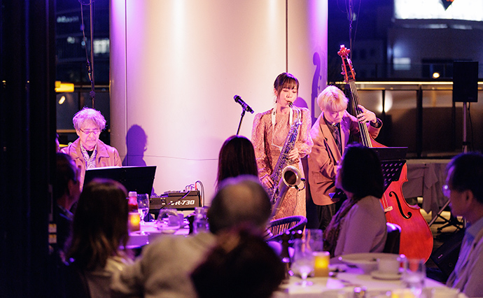 演奏は2019年のメジャーデビュー以来、世界33カ国でチャートイン、「THE JAZZ AVENGERS」でも活躍するテナーサックスの米澤 美玖氏が登場。コースはフィレミニョンとロブスターテールが楽しめる特別コースを堪能し、至福な時間を楽しんでいただきました。