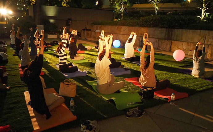 ルーシーダットン(タイ式ヨガ)は、自己整体をベースとして、体を「本来あるべき状態に戻す」ことを目的にしています。比較的難易度が低く、簡単に取り組めるポーズも多く、初めてのお客さまでも参加のしやすい内容でした。気候の良い時期の屋外開催で、楽しく汗をかきがらのエクサイサイズの時間となりました。