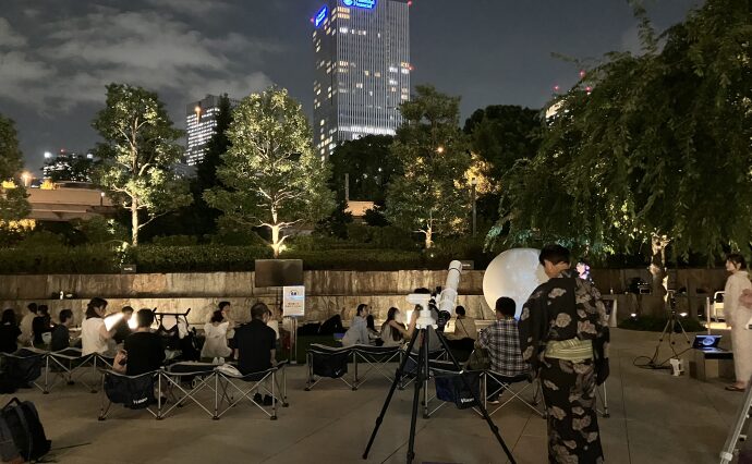 伝統的七夕の日に、都会の真中で浴衣を着て星空観望会を開催いたしました。