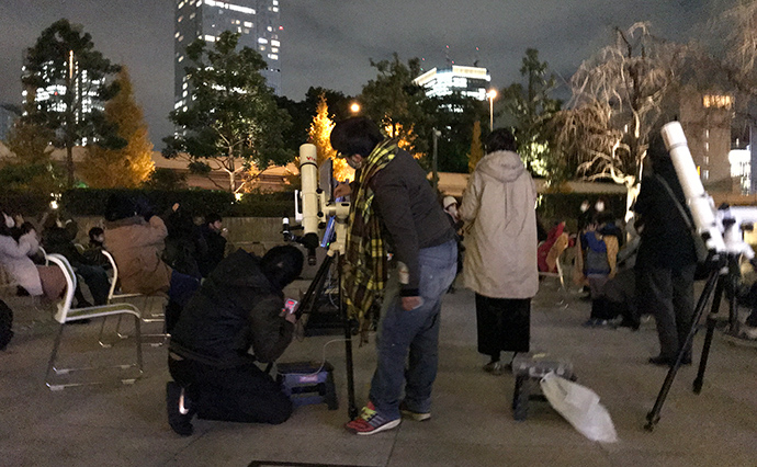天体望遠鏡や双眼鏡を使って、流れ星や土星などをみて都会の静かな夜お楽しみ頂きました。