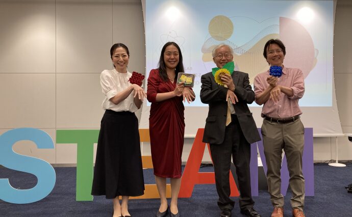今回のKIOI STEAM LABは、講師に折り紙作家の川崎敏和氏をお招きして、実際に折り紙でバラを作り、その美しさの背後にある数学の存在と不思議に迫りました。