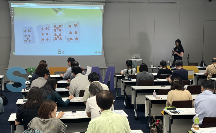 セミナーでは早速、中島さち子さんの用意したトランプマジックをペアになった隣同士で見せ合いました。すると簡単に相手を騙すことができ、会場は驚きの歓声が!
