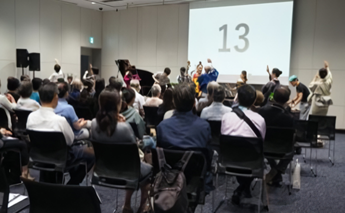 そして後半は、生き方そのものがSTEAMのメンバーによるミニライブとフィナーレにサプライズパフォーマーが登場し、”素数音頭”が披露され会場を熱くしました。素数音頭は、盆踊りをしながら素数の数を手拍子していきます。数が2.3.5.7.11.13.17…43と増えていくごとに会場に熱気が渦巻き、参加者の皆さんと一足先に愉快な夏祭りを過ごすことができました。