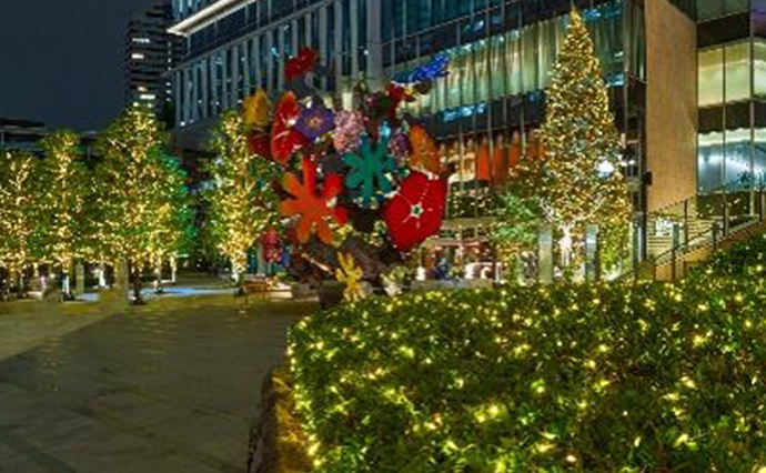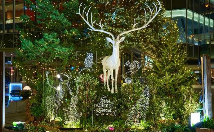 東京ガーデンテラス紀尾井町のメインエントランスとなる「花の広場」に、高さ約10mの生木を使用したツリーアートが新登場しました。人や自然を大切に思う豊かな心を生木を使ったアートで表現し、冬の森に住む動物達をイメージしたアートカリグラフィーとともに楽しむことができます。また、使用された生木は育った森へ帰り、命を繋ぎます。