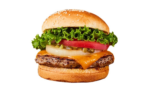 ジューシーなクォーターパウンド(113g)のパティ、新鮮野菜、レッドチェダーチーズをサンド。 -