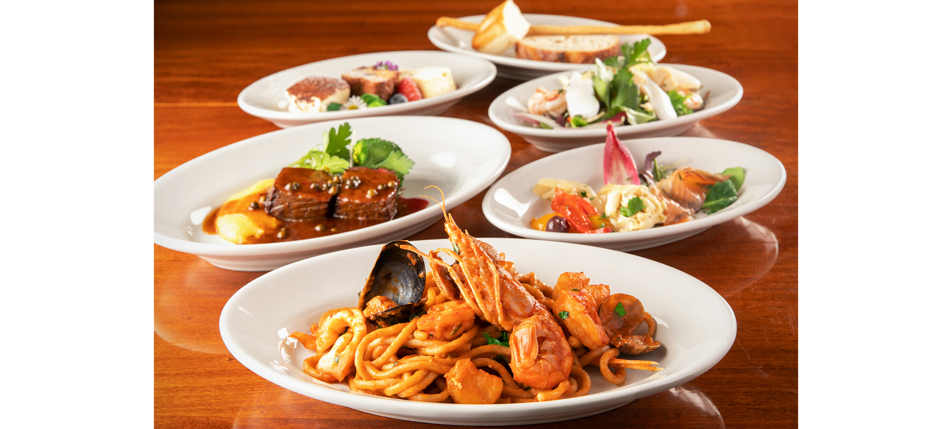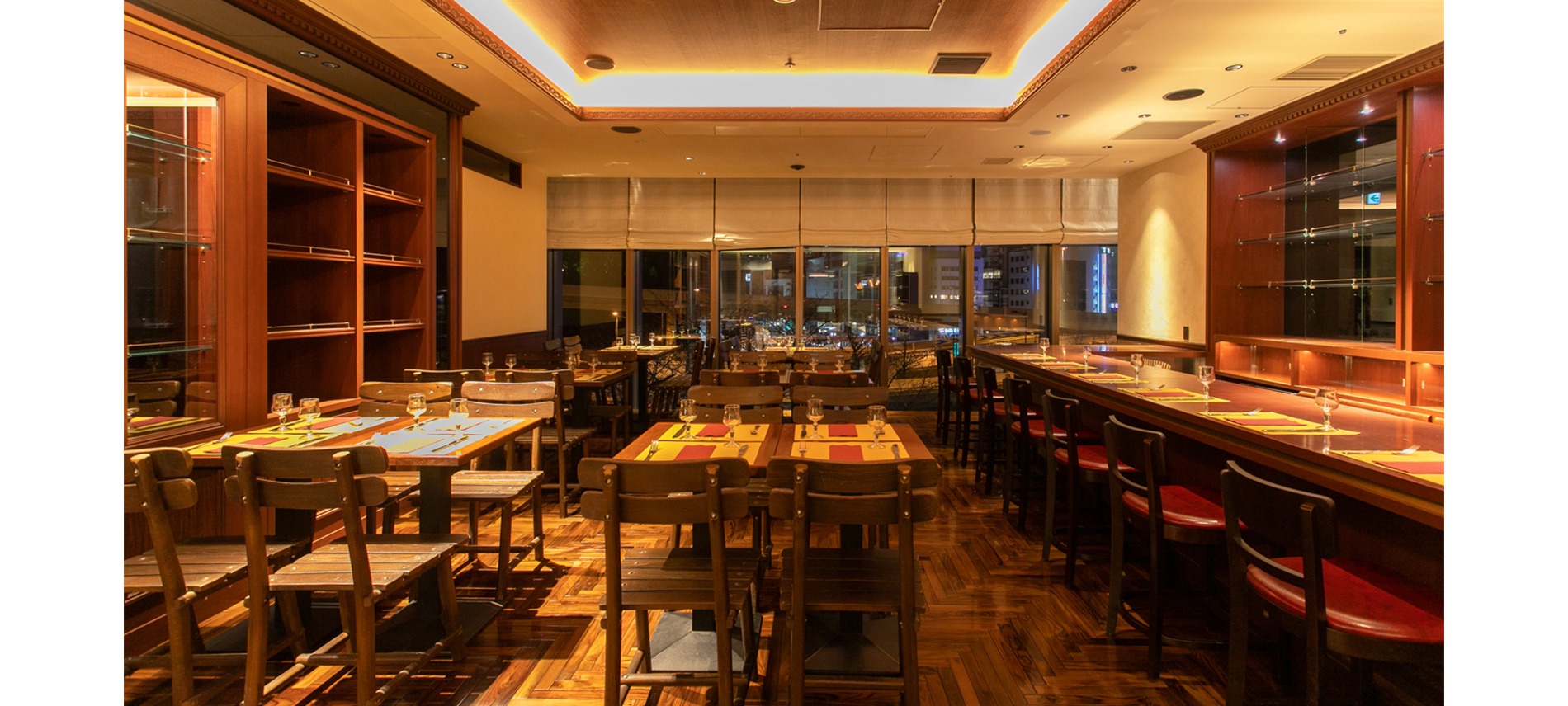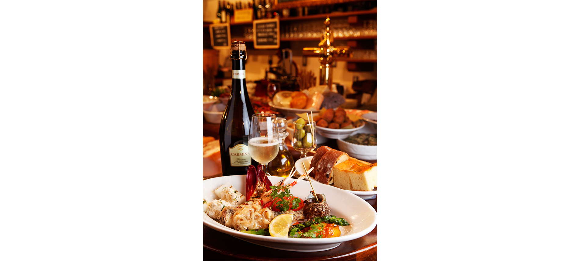 ヴェネチアはイタリアの水の都と称され、恋に落ちてしまいそうな美しい街。そこには江戸時代初期から続く『バーカロ』というスタイルのお店が路地裏に多数存在しています。スタンディングバーやカウンター席で前菜とワインを、テーブル席でゆっくりヴェネチア料理を堪能するのも、どれもヴェネチア流の楽しみ方。全部食べてみたくなるヴェネチア前菜が並ぶスタンディングエリアはワイン好きの集まるスポット。